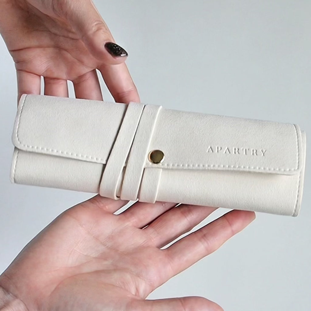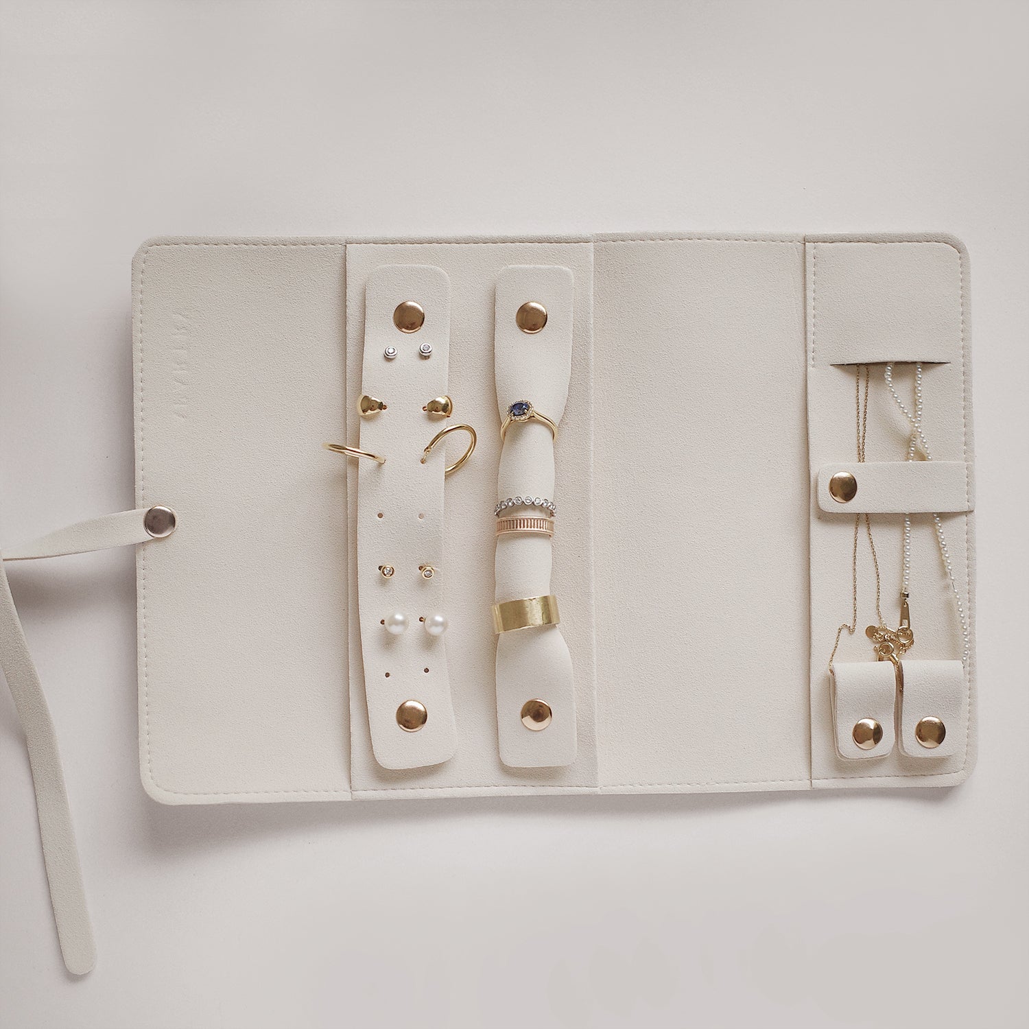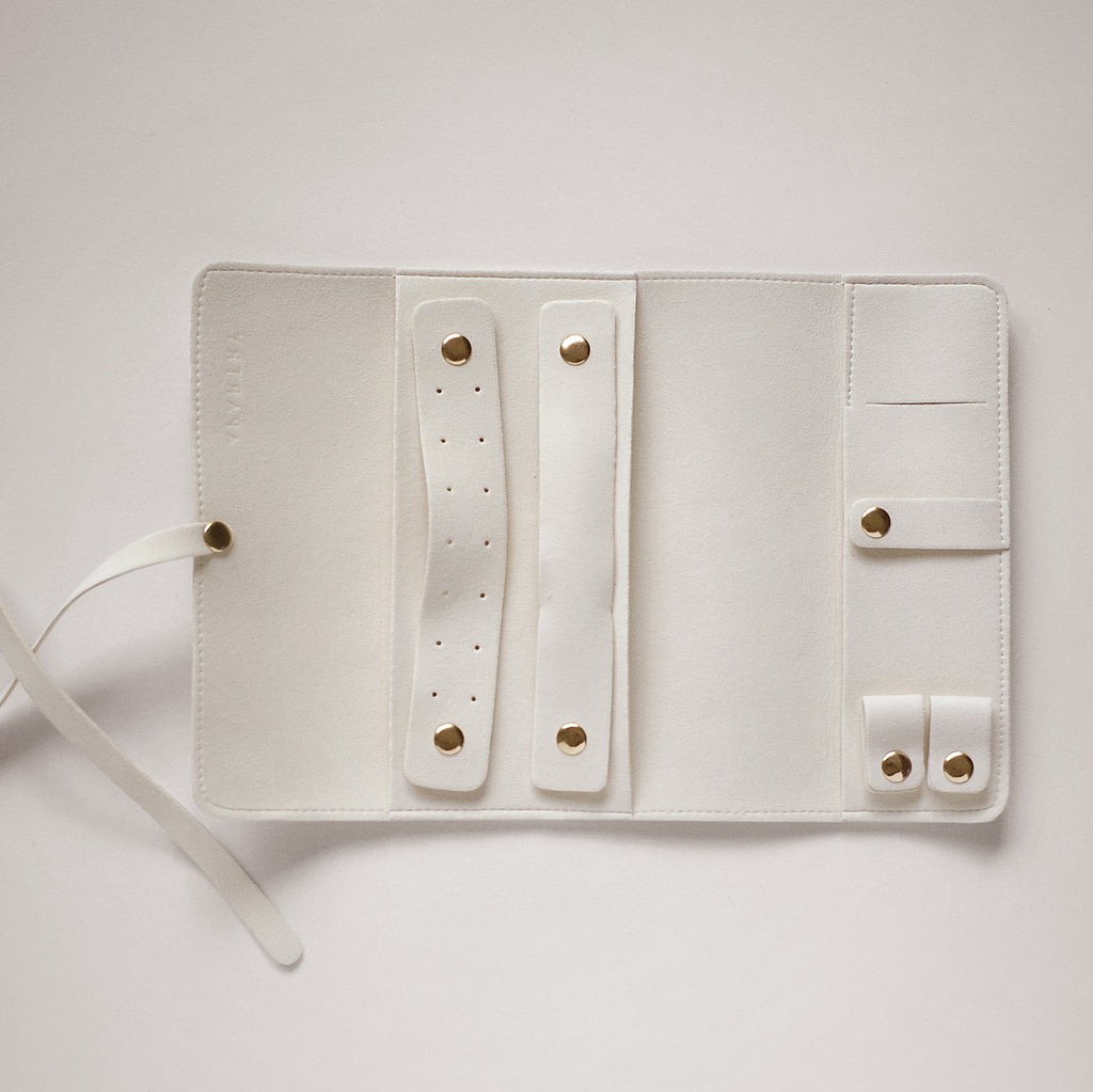 長期の旅行にもお使いいただける持ち運び用オリジナルポーチです。ネックレスも絡まらず持ち運びいただくことが可能です。