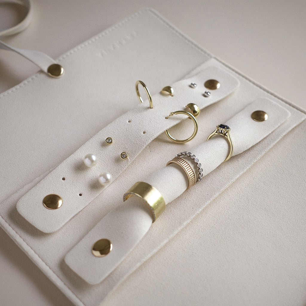 マイクロファイバー素材のため着用後の油分を拭き取り、大切なジュエリーを優しく包み込みます。